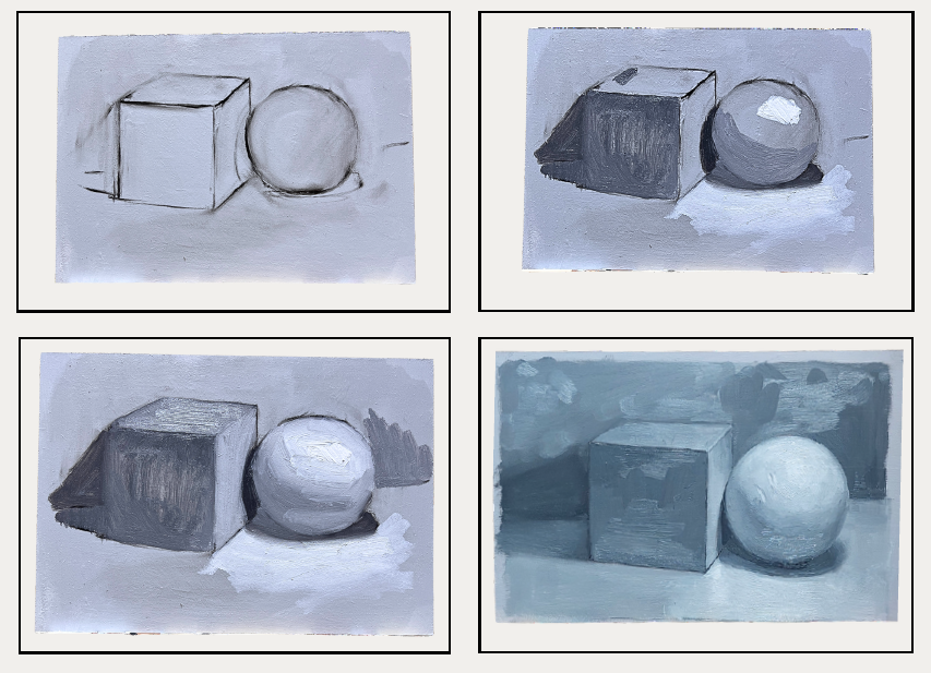 Das Malen in Graustufen oder mit einer reduzierten Farbpalette ist besonders hilfreich für das künstlerische Lernen oder als eigenständiges Kunstwerk. Es ermöglicht, sich ganz auf Tonwerte, Form und Kontrast zu konzentrieren. Schritt für Schritt lernen Sie, wie Tiefe und Räumlichkeit allein durch Helligkeitswerte entstehen.